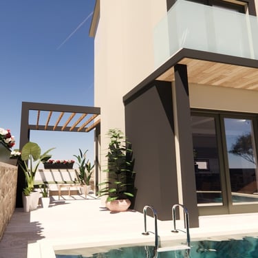 Exclusive Design: The ground floor features an American-style open-plan living area, kitchen, and WC, designed for seamless indoor-outdoor living. The first and second floors each boast a spacious bedroom with an en-suite bathroom, offering privacy and unparalleled comfort.